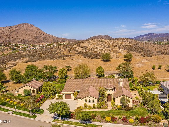 Welcome Home... Masterful design and impeccable craftsmanship are uniquely embodied in this Warmington built single-story estate with a Casita in the highly desirable Via Palermo of Dos Vientos. Astounding location backing to open space with only one neighbor on nearly 29,000 square foot lot giving ample room for a pool and spa. Original owner with pride of ownership that radiates throughout the home with love and care for 19 years. Breathtaking main home at nearly 3,800 square feet possesses 4 bedrooms, office and 3.5 bathrooms. The Casita is perfect for various uses and is equipped with a full bathroom, kitchenette, fireplace and its own heating and air system. Vast outdoor living space gives you a wonderland in which to entertain and admire. Delight family and guests under the enormous, covered patio and immerse in the lush, serene local flora. Breathe easy entering your beautifully appointed abode of natural materials and luxurious finishes. Superb open concept floor plan with soaring ceilings allowing for abundance of natural light. Great room off the gourmet chef's kitchen with butler's pantry, gigantic island and breakfast nook, majestic formal living room and adjacent formal dining room. Primary suite with custom built-ins and tranquil bathroom with enormous walk-in closet that also has custom built-ins, ensuite guest quarters, two additional sizable bedrooms with jack and jill bath. Expansive driveway to your split 3 car garage with an extensive amount of storage cabinets. Neighboring California distinguished Sycamore Canyon K-8 School, parks and hiking trails. This thrilling home is ideally positioned to immerse in serenity and share magical moments with family and friends.