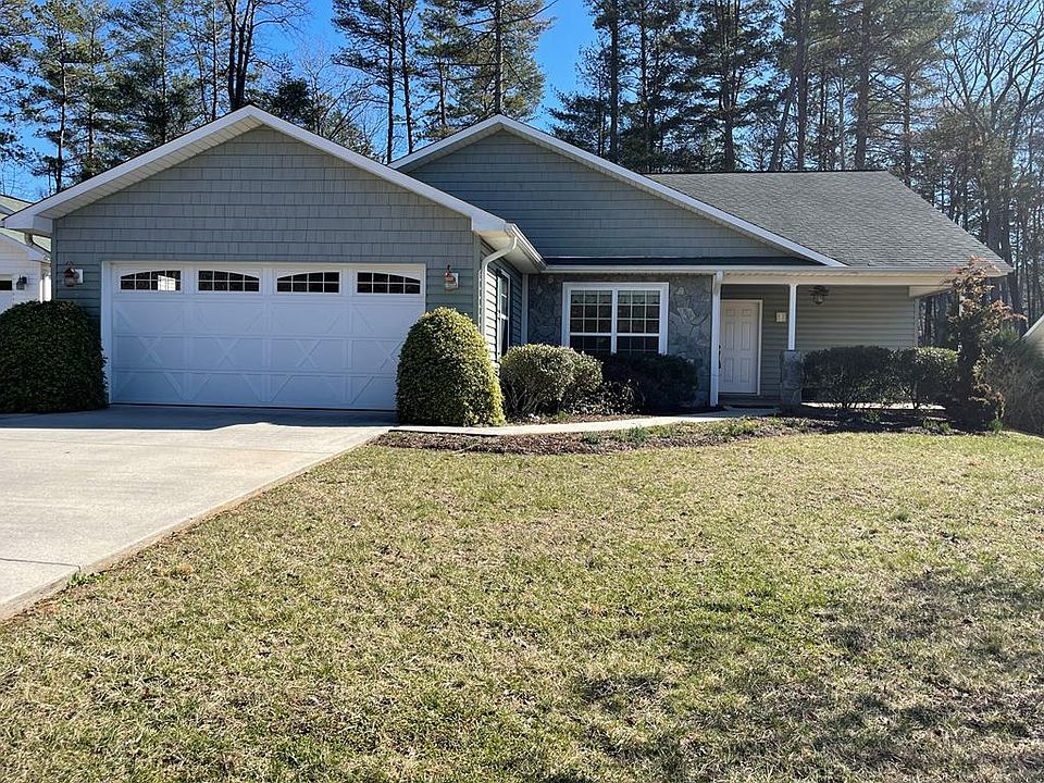 One Level Living at it's Best in Coventry Place! Just minutes west of town in beautiful Cartoogechaye sits this beautiful 3/2 split bedroom ranch. The inviting stone front porch is what you'll notice first and upon entering into the foyer you'll notice the openness which leads you to the formal dining room, then the expansive eat in kitchen with an island, a wall of storage, plenty of cabinets, solid surface counter tops and a storage closet, which is open to the living room with the beautiful marble fireplace and the two french doors one will lead out to the private patio in the back & the other to the screened porch. This is all in the center of the home, to the right of the main entrance is the large primary suite with big picture windows to let in all the natural light, large walk in closet, walk in shower, jetted tub and dual vanity, and on the other side is the 2 large guest rooms, hall bath, laundry room and the 2 car garage. This one level home has wood floors throughout and ceramic tile in the foyer, kitchen, bathrooms and the laundry room. Paved all the way to the door and landscaped with plenty of garden space to add your own personal touch.