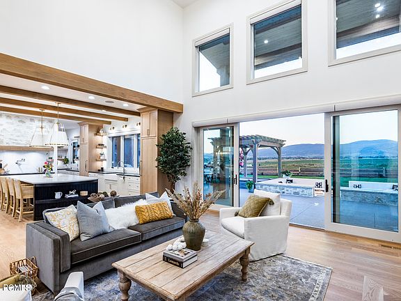 This Park City Showcase home was completed in 2022 and is situated on over 1.2 acres in the quaint Lazy Acres Ranch Estates. The home has exceptional finishes throughout, designed by Jana Gough Interiors and built by renowned Gough contracting. An entertainer's dream, the expansive kitchen is accented with Quartz counter tops, Subzero, Wolf and Uline Appliances to include a 6 burner, convection Wolf range, two dishwashers, cast iron Apron sink, center island with prep sink, butler's pantry, artistic wine bar, wet bar, ice maker, and coffee station. The kitchen and great room lead to incredible outdoor living spaces to include a full kitchen accentuated with a natural gas barbecue grill, pellet smoker, and beverage refrigerator. Exterior features also include a fully landscaped yard with under-lit, walkway lighting leading to a gas linear firepit gathering area, with pergola covered hot tub, and panoramic views of the Kamas Valley and Weber Canyon and Uinta mountains and Wastach mountains. The main level flows beautifully with a stone accented dining space, great room with natural wood timber ceilings, gourmet kitchen, custom designed office, main level primary suite with a walk-in, oversized closet to include laundry, and a zen freestanding tub and oversized shower in the dual vanity, primary bathroom. Additionally, the mud room sits conveniently off the oversized, heated 3-car garage. The second story includes 3 custom accented, ensuite bedrooms, an additional laundry room, media room equipped with a 85'' Qled Home Theater System and Sonos Surround Sound. Other Smart features in include full Lutron Smart Lighting, Sonos Audio System, Elan8 Smart system, automated shades, and 50 amp E/V charge plug-in main garage plus 50 amp R/V or Welder plugin in the detached garage. The 800 sq. ft. accessory dwelling unit features a full kitchen, bedroom and bathroom and is situated above the oversized, heated RV/toy 1,200 sq. ft garage. Furniture is negotiable.