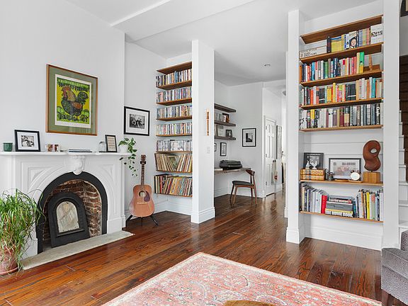 Welcome to 186 Washington Ave #2, a gorgeous floor-through, two-story apartment. Located on Washington Ave between Myrtle and Willoughby, this spacious two-bedroom is one of only two units in a beautiful Brooklyn brownstone. With only an 8 minute walk from Fort Greene Park, the neighborhood is full of life with amazing food and great local stores. The apartment offers the entire upper two floors of the brownstone, as well as a roof deck with views of the Manhattan and Brooklyn skyline. The open kitchen is connected to the large living room by a built-in home office. The kitchen is finished with extensive custom cabinetry and has custom wide plank wood floors throughout the apartment. All rooms have tall ceilings and are flooded with sunlight. The bathroom is spacious and adorned with a skylight. Additional details include original mantles, and in-unit washer/dryer, and a powder room. A beautiful and historic street, Washington Avenue is framed by a canopy of trees that shade the wide sidewalks and deep front gardens of brownstones. You will be perfectly located to take advantage of all the fun and conveniences that Clinton Hill and Fort Greene have to offer such as The Pratt Institute, Fort Greene Park, the shops on Myrtle, the Brooklyn Navy Yard, the local Farmer's Market, and so much more. Preferred move-in date is October 1, 2025.