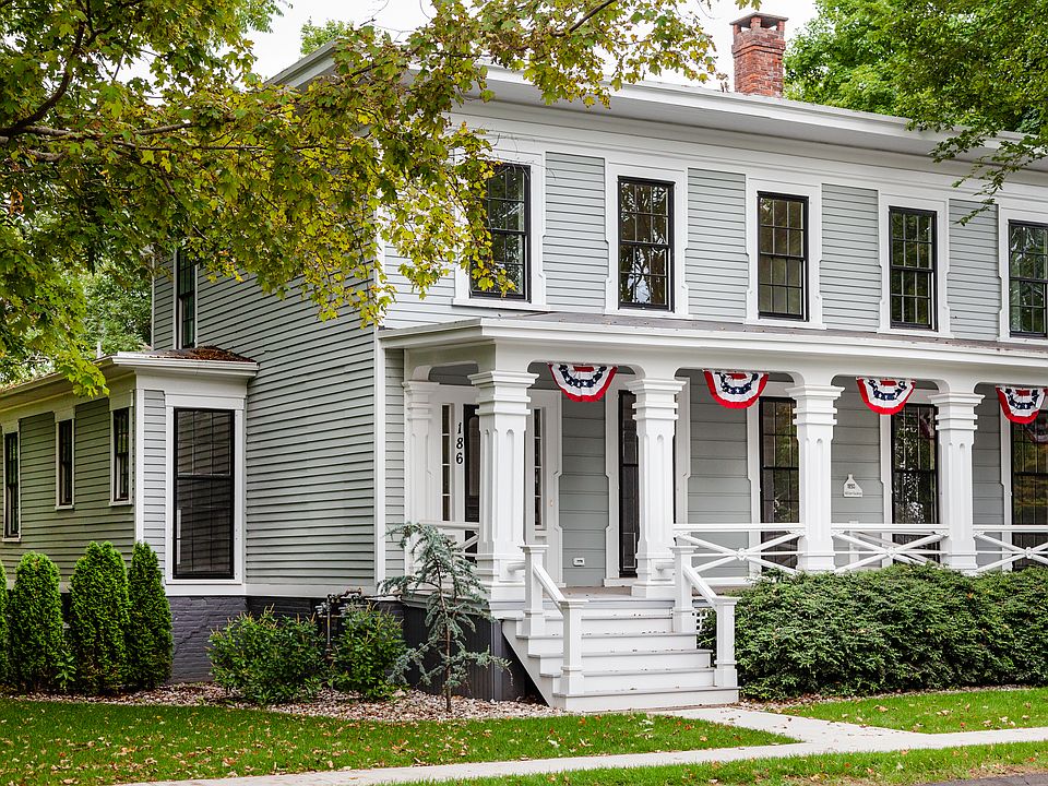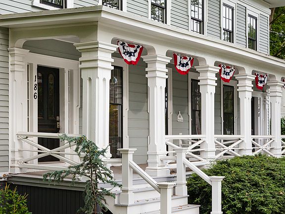 Walk to the Guilford Green!The William Faulkner House ~circa 1850 was originally built as a Greek Revival style, six-bay double house. Architectural details include matching doorways, shouldered window surrounds, and a full facade veranda with a cross-braced balustrade. Other than the historic framework, the home has been fully updated and is highly efficient. New natural gas hydro-air HVAC, plumbing, electrical, septic system, windows (other than the historic "walk out" windows) luxury appliances, oak flooring, roofing and more. The unit is 85% complete, giving buyers the opportunity to select these remaining finishes and details: appliances, backsplash tile, cabinet pulls, kitchen and bathroom faucets, toilets, kitchen island, wall paint colors and stain color for the hardwood flooring. Listing price includes a budget for these items, you just need to pick them.Each unit offers 3 bedrooms & 3 full baths, a full-sized laundry off the 2nd floor master suite and 830 square feet unfinished basement storage space (not included in listing square footage). The new garage was constructed with two large covered parking spaces per unit - one enclosed garage and one carport - with even more private storage space above. Unit 186 enjoys exclusive use of nearly 7000 square feet of yard area. Start a garden. Stroll to the historic Guilford Green for shopping and wonderful restaurants. The train station is a five minute walk down Whitfield Street. New York or Boston anyone?