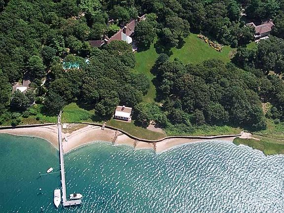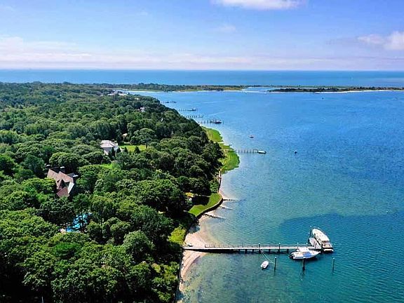 Waterfront Legacy Property on Oyster Harbors! Perched on an elevated four-acre lot overlooking Cotuit Bay sits this striking example of a Tudor style residence designed by renowned Architect Clifford Allbright in 1933 and since beautifully maintained and updated in harmony with the original design. Refined architectural details set the tone in this grand home with over 10,000 sq. ft. of living space, an inground pool, a boathouse with extraordinary views, fireplace, sitting area and changing rooms, 437 linear feet of water frontage and a substantial deep-water dock, all combining to create an exceptionally rare offering in arguably one of the finest locations of Oyster Harbors. As you enter this home you will find yourself in a timeless and enchanting foyer that is equally refined with an impressive custom spiral staircase. Gracious formal living and dining rooms feature well-proportioned and spacious areas with soaring ceilings and wood and slate flooring, custom arched windows and doors and multiple fireplaces. Floor to ceiling walls of windows flood the rooms with natural light and beautiful water views are found throughout. A spacious great room anchors the home and provides