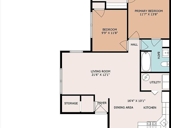 - None, 2 Bedrooms, Kitchen, Laundry Room, Living Room, Bath Full, Utility Room, Attic