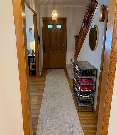 A beautifully maintained home with immaculate wood floors and new carpeting in foyer and on stairs. Roomy master bedroom. Lovely dining room and spacious living room .There is a walk up attic and spacious closets. Also has a first floor laundry room.