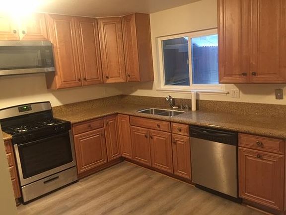 Condo in Monticello Community with new luxury vinyl plank flooring and fresh paint throughout. Large walk in master closet and 2 large closets in 2 other bedrooms. New range/microwave in kitchen. Master bath has new vanity and both bathrooms have new toilets. Solid counters throughout and 10 year old kitchen remodel. Small enclosed attached patio. Laundry hookups on site (last tenant left washer/dryer). 2 car attached garage plus permit to park 1 additional car. Several community pools and large clubhouse. Close to shopping, beaches, schools, dining and entertainment.