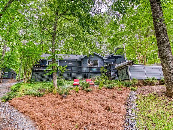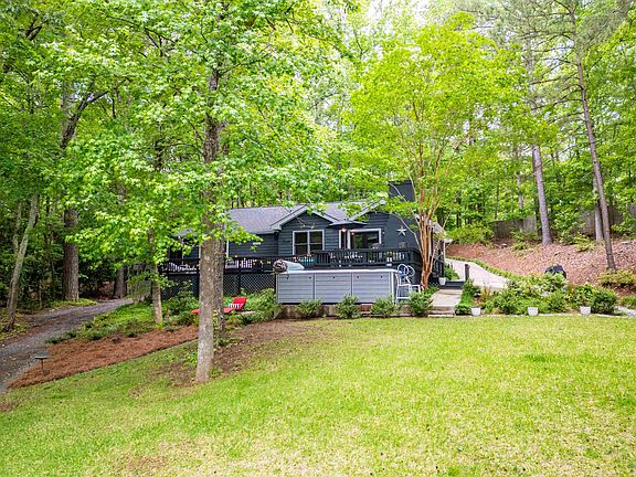 Looking for that perfect weekend getaway on Lake Oconee? Then hurry and schedule a showing of this recently remodeled 3/2 ranch that is located less than 10 minutes from I-20. Private setting with multiple outdoor entertaining areas designed to soak up the huge open water views. Picnic table, lakeside deck, lakeside swing, and a horseshoe pit are sprinkled throughout this picturesque setting creating a lakeside oasis.. There is a swim spa located just a few steps off the back deck. The house has a wonderful masonry fireplace in the great room as its focal point. New tile baths. Remodeled kitchen with granite tops and newer appliances. Roof replaced 2023. All new landscaping and partial concrete drive were also installed by current owners. Circular driveway. There is also an airconditioned workshop and a separate outbuilding for storage. 146 ft Lake Oconee water frontage and over  5'5" depth at dock.