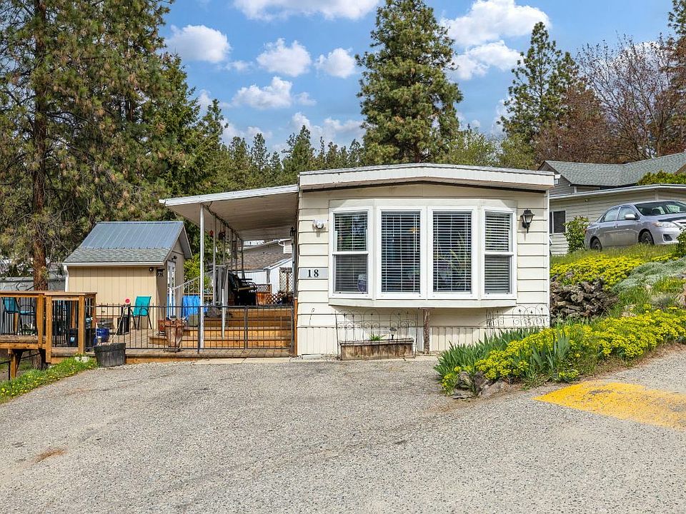 Step into the easy living at Pineridge Estates. This 2 bedroom, 1 bathroom charmer in the ever popular, family friendly manufactured home park. It's not just a place to live—it's a vibrant community where neighbors quickly become friends, and every street corner adds a chapter to your family's story. Flooded with natural light, this home features big, welcoming windows that make every sunny day just a bit brighter. The bonus room at the back? It's your canvas—perfect as a pint-sized playroom, a quiet home office, or that extra storage space you've always needed. Outside, your own private oasis awaits. A large fenced yard with a spacious deck calls for summer barbecues and endless outdoor fun. And let's not forget the hobbyist's dream—a generous shed where you can tinker to your heart's content. Just a hop, skip, and a jump from local schools, everyday conveniences, and the tranquil Okanagan Lake, your new home is in the perfect spot for easy living. Don't let this home be the one that got away—come see why life in Pineridge Estates is just what you've been searching for!