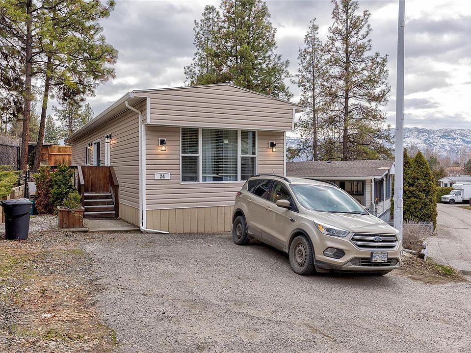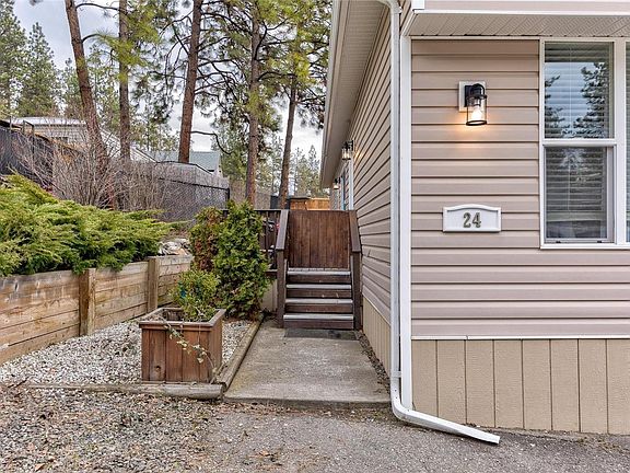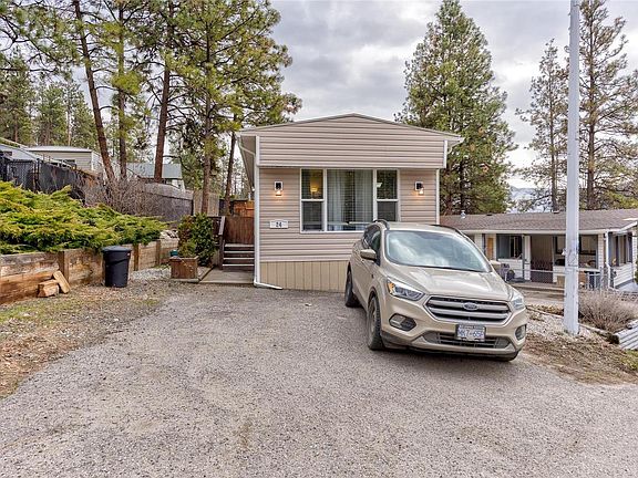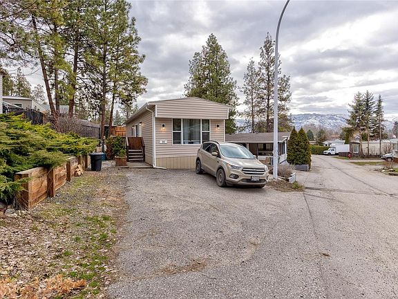 Welcome home to one of the best mobile home parks in West Kelowna. This home is very private with lots of outdoor room and pine trees all around you. Centrally located, as you are only 15 minutes to downtown Kelowna, walking distance to the beach and only 5 minutes to shopping, golf, groceries and hardware stores in West Kelowna. This is one of the more private homes in the park. As you walk to the front door you are greeted with a deck that over looks your side/back yard which features an elevated private outdoor dining area. Around back there is a private garden that receives lots of sun for fruit and vegetables. As you enter the home you will instantly notice the updated finishing throughout. The home has a very practical floor plan with the bathroom separating both of the bedrooms. The living room is also separated from the bedrooms by the kitchen. Measurements are approximate and should be verified if deemed important by the Buyer.