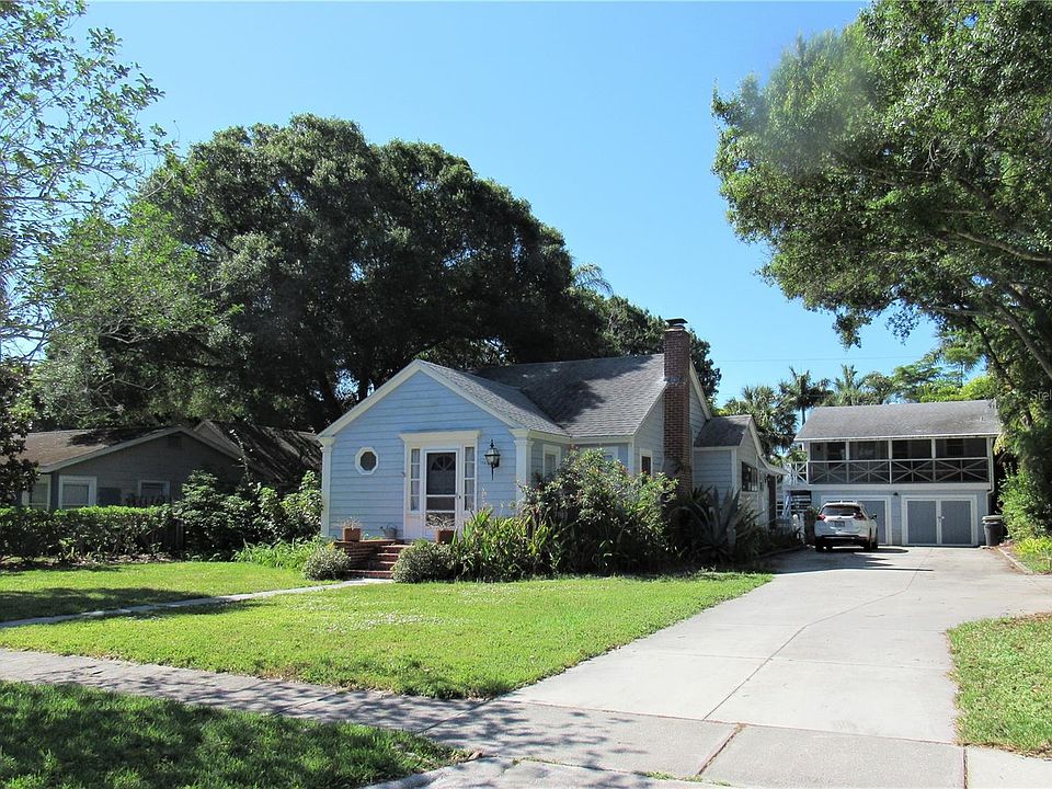Highly desirable West of Trail charming 1926 two bedroom 1-1/2 bath home that also has a detached 2 car garage with a 2 bedroom 1 bath fully furnished apt above with a larger Studio Unit with kitchen and bath attached in back. Both rental units recently renovated. New roofs on home and garage building with new Hardie board siding and hurricane windows recently installed on house. carriage house above it and a studio apartment below. The lot is 75x138 and the rear view faced south, perfect for a pool. The home features heart pine wood floors in most rooms and an open kitchen to family room and dining area. Large screened in porch overlooks the pretty back yard. Renovate or build new, this location and size of lot is hard to beat. Rental incomes pay your taxes and insurance too and could be higher amounts. Great street 5 blocks to Southside Village shops and restaurants.