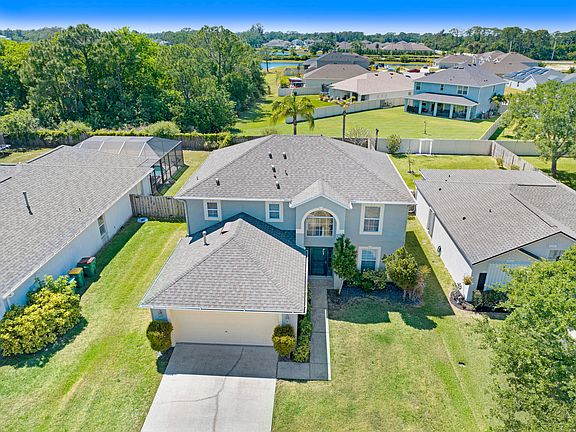 Gated West Melbourne Community, close to A rated schools, parks, shopping, and restaurants. This 2 story home has been freshly painted inside and has new carpeting. Roof was replaced in 2018. The entry foyer leads to a large eat in kitchen with wood cabinets, new (2023) stainless steel appliances, and kitchen island. Family room, formal dining room, a half bath and a bonus room all on the first floor. The second floor has 4 bedrooms, including a primary suite with double walk in closets, soaking tub and separate shower. The screened in ground pool in the backyard provides hours of family fun. A covered lanai offers a shaded outdoor area for dining and socializing. The neighborhood has a playground and a community pool. West Melbourne has so much to offer and is a great place to call home.