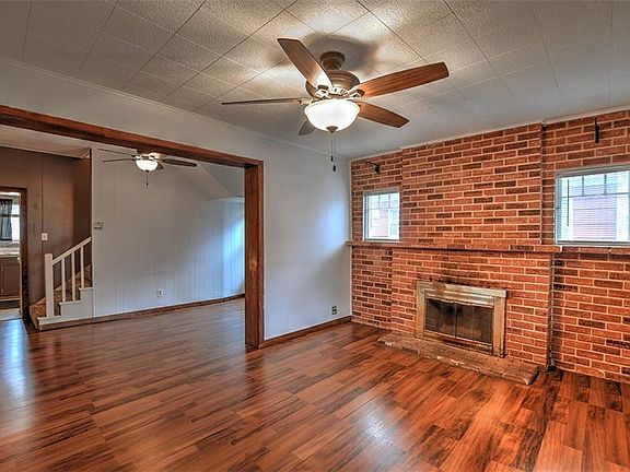 Very nice home close to Lake Decatur, Nelson Park and The Devon. Master bedroom on main floor with sitting room. Full bath off of the sitting room. Or, main floor could have 2 bedroom. There are two bedrooms plus 1/2 bath on the upper level. The living room and dining room are open to each other with wood planking laminated flooring. Main floor bath has been remodeled. The kitchen has been updated with tile counter tops with a beautiful tin looking backsplash. Oversized 2 car detached garage. Private back yard. Large covered front porch. Quick possession is available.
