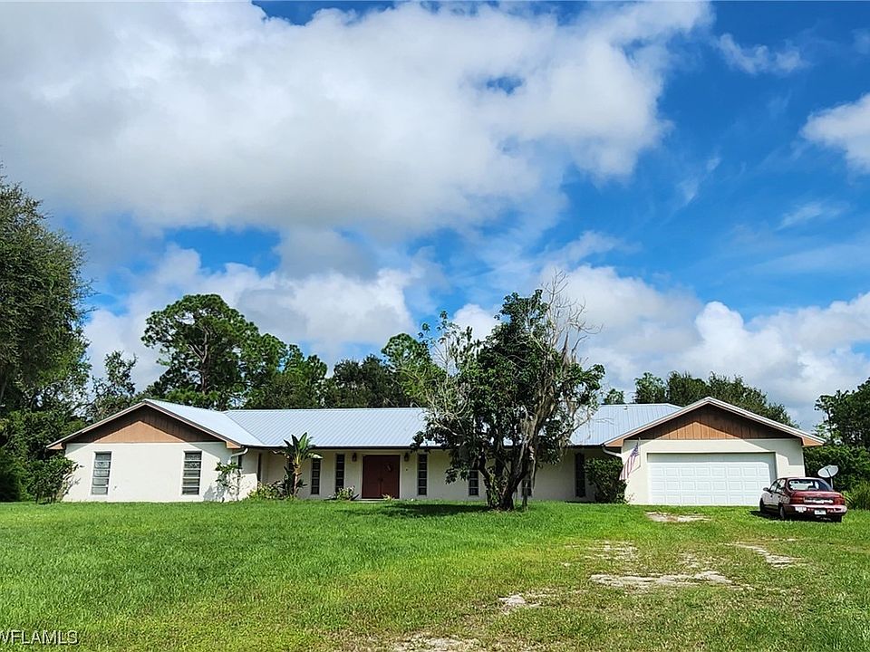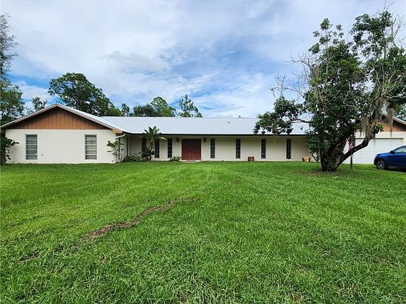 Looking for a huge country home on nearly 5 beautiful acres? This is it! With this much acreage, the property could easily be divided for use as a family compound. The well-built concrete block, stucco home is surrounded by mature landscaping and boasts 2896 square feet under air with a total of 4358 square feet. The sturdy home itself has four spacious bedrooms with one currently being used as an office - perfect for those who work remotely - as well as three 3 full baths. An abundance of closet space (including a huge, walk-in closet) can be found throughout as well as large windows and sliders. The bright and airy common areas include a spacious formal living room, formal dining room, and a family room located just off the kitchen, which also has an abundance of cabinets and counter space. The two-car garage sports a separate entry into the front hall and another into the mudroom/workshop which also adjoins the laundry room complete with a washer and dryer (both convey with the sale), a handy utility sink and additional storage. The home's metal roof was replaced in 2018. This property truly has great potential. Call for your appointment today.