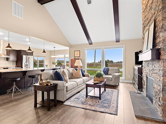 Step inside this better than new Windsor built ranch in popular Harrison Lakes. Why better than new? The yard is planted and growing, the landscaping has been added, the garage floor has a professional epoxy seal, the new refrigerator and gas range are also included! You can't build this home today for the price listed. The Country Manor style is a timeless design to meet the needs of every generation. Beautiful beamed great room with stone hearth and expansive west windows to a scenic farm field make this home a great place to quarantine. Note the numerous upgraded features sure to please the most discerning buyer: attractive granite countertops, luxury vinyl plank flooring throughout the foyer, great room, kitchen, dining area, and bedrooms. Range hood vented to the outside for the resident chef. Tile walk-in shower in the main en suite plus a separate soaking tub and dual vanities. Custom cabinetry with soft close doors and drawers throughout. Separate laundry room off convenient mudroom. Plenty of closet and storage space. There are 9 years of warranty still on the house plus the energy efficient 5-star HERS Energy Rating is friendly to your budget and the environment. Schedule your tour soon! House has not yet been fully assessed, so property taxes are anticipated to be 1% of the market value minus any exemptions for which a buyer qualifies/files.