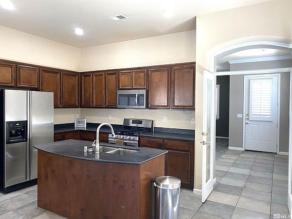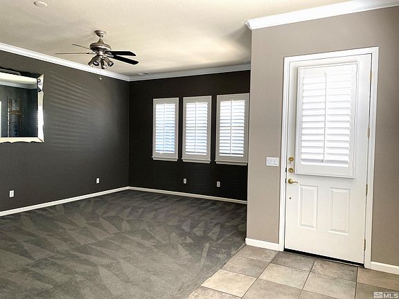 Live in “The Classics” gated community in this Single Level, ONE Family Owned HOME! Located in South Reno, Double Diamond/Damonte Ranch. Easy Flow Floorplan with separate living room and French Glass doors for "quiet" from the kitchen and family rooms. Has gas log fireplace and bonus office/den or a more formal dining area...or can be modified for 3rd bedroom use. Larger kitchen with stainless appliances. Spacious primary bedroom suite with double sinks and large walk-in closet, with custom shelving!, Plantation shutters in the formal living room, custom interior paint, new kitchen and primary bathroom faucets. Custom coated garage floors and large usable, low maintenance backyard with custom concrete and peek Mt. Rose views. Colorful Planters remain. Kitchen refrigerator, washer/dryer included in sale with no implied warranty. Information deemed accurate and reliable, Buyer to conduct Due Diligence and verify all information, including school districts, HOA fees and services.