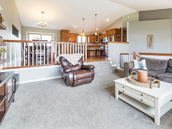 Check out this well maintained 3 level split in Watertown's Wildflower neighborhood! 3 beds on the upper level, large main floor living room, and fully finished basement. Lower level has a wet bar and gas fireplace for cozy entertaining! Office/flex room features beautiful french doors! So much outdoor space to enjoy with a large private back yard, patio with drop-in fire-pit, and BRAND new deck!