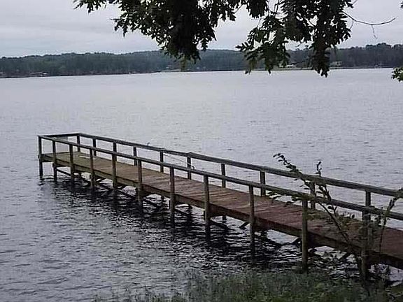 Magnificent main channel views from this point lot with over 370 feet of water frontage. Water front features dock and rip rap shoreline protection. 2 bedroom bungalow with a nice masonry fireplace and lots of glass to view the lake.
