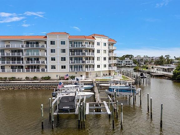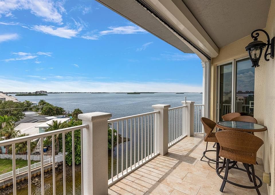 Welcome to Villa del Mar, where elegance meets coastal serenity in one of Clearwater’s most refined waterfront enclaves. Perched gracefully on the top floor of an intimate 24-residence building, with over 2,500 sq ft this home is the epitome of lavish waterfront living. A private, deeded boat slip conveys with the residence, offering effortless access to the open water for sunset cruises and weekend adventures. From your private elevator foyer, enter through the custom stained-glass doors into a residence where every inch has been curated with elevated taste and craftsmanship. Rich travertine and ceramic tile flooring seamlessly connect expansive living and dining spaces to a grand waterfront terrace perfect for both vibrant entertaining and tranquil reflection. Designed with the connoisseur in mind, this home features a gourmet kitchen with a raised ceiling and fan, oversized granite countertops, built-in cabinetry, and top-of-the-line appliances. Custom China cabinets and roll-out drawers offer both luxury and practicality. The living room, wrapped in glass, features remote-controlled blinds that frame the breathtaking vistas beyond. The primary suite is a retreat unto itself, offering a spacious layout, raised ceilings with fan, custom cabinetry, and a spa-style bath complete with built-in glass tile shower and roll-out drawers throughout. Two additional bedrooms include elegant touches—one with built-in oak desk and pull-down bed, and another with mirrored walls perfect for a home gym or studio. Luxury continues throughout with remote-controlled hurricane screens on the balcony engineered to withstand Category 5 storms and an oversized 2-car garage with upgraded emergency power control, ideal for storm readiness. All this, just moments from the vibrant culture of Downtown Dunedin, the beaches of Honeymoon Island, and a lifestyle that blends upscale tranquility with easy coastal access. This is more than a home it’s a celebration of waterfront luxury, artistry, and timeless design. Condo reserves are fully funded, and all reports are readily available for buyer confidence.