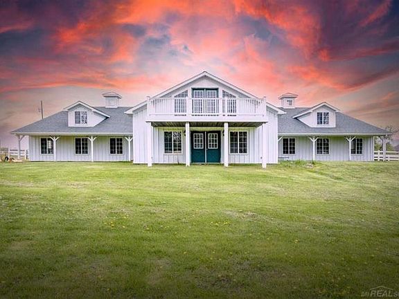 Horse Ranch in Michigan! Hang your saddle here. Room for horses & relaxed country living on over 131 acres. This property features a 3 bed, 4bath home with a walk-out basement, 2 car detached garage & multi-tier decking around the home. Animal lovers will enjoy the beautiful horse ranch on site. This lovely barn is extravagant inside & out. Indoor features knotty pine throughout, a lounging area with a 1/2 bath, & a loft with a balcony overlooking the beautiful rolling land. There is a captured show room with knotty pine walls, a 34X100 "Toy Room" area with concrete floors and more knotty pine walls & Ceiling. 9 horse stalls with the potential for 2 more in the barn & 4 Amish built horse shelters, in the pasture. The amenities on this property are endless! Outdoors you have a large pond with lights surrounding it, 2 custom built hunting blinds and the Bridgehampton River running across the gorgeous property. No expense spared with this custom built ranch. DO NOT TOUCH ANIMALS.