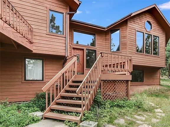 MOUNTAIN LIVING AT ITS BEST! Welcome Home to the coveted Woodside subdivision. 3 acres of mature trees provide unparalleled privacy, abundant wildlife viewing on this legal horse property w miles of HOA maintained private trails. Mountain retreat has architectural interest, pleasing flow ideal for entertaining and everyday family living. Comfortable home with open distinct floor plan, chef friendly and functional kitchen w/ lots of pantry space, formal dining room, grand living room w/ vaulted ceilings and beautiful windows. Three bedrooms, including master bedroom suite on main floor. Newly refinished bedroom and rec room in lower walkout level. Enjoy LOW Park County taxes & choice of schools. Elk Creek Elementary just minutes away. Situated on school bus route which means consistent and timely road maintenance. RTD around the corner, 10 min drive to Conifer Town Centre, 25 mins to C470, 45 mins to downtown Denver, only one stoplight to DIA, makes this a perfect mountain location
