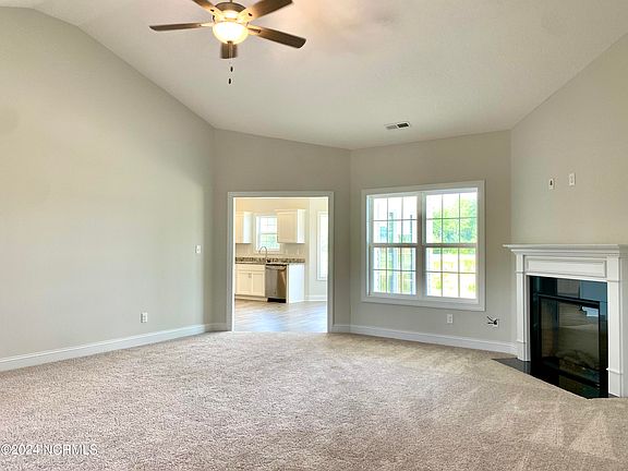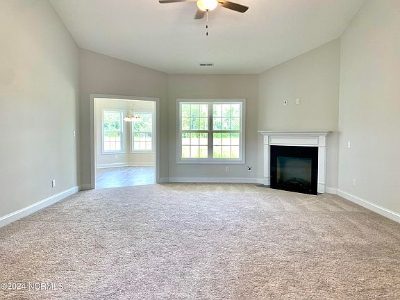 Welcome to the highly desired & popular community of Onslow Bay. Brand new construction built by Onslow County's most trusted & preferred builder, featured in Builder 100/ Top 200 Builders in the country. Onslow Bay is a hot spot, 3 miles to MCB Camp Lejeune's Piney Green gate, 14 miles to New River Air Station & minutes to area schools, shopping & dining. This beautiful neighborhood is sure to impress, complete with a clubhouse area & community pool. The Raegan is a Sydes exclusive floor plan, 1916 heated square feet, split floor plan with 3 bedrooms and 2 bathrooms. A quaint front porch welcomes you home into a magnificent 18x23 family room with a cozy corner fireplace. The master suite will feel like a private retreat, 17x13 with dual closets and a luxurious master bathroom. The master bath is a spacious 11x13 with double vanity, separate shower, and soaking tub. The kitchen is sure to impress with beautiful flat panel, staggered cabinets, and stainless-steel appliances to include smooth top range, dishwasher, and microwave. Eat-in kitchen is open to a 9x12 dining area. Bedrooms two and three have ideal walk-in closets. 2-car garage and a covered back porch. Call today. NOTE: Floor plan renderings are similar and solely representational. Measurements, elevations, and specs may vary in final construction. Limited selections for buyer to choose. Call L/A to verify. MOVE-IN READY!!!