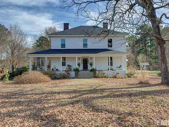 Turn of the century 2-stry Greek Revival farmhouse w/wrap around front porch. Wide central hallways. Dwnstrs ste, eat-in kitchen, W/I pantry & 1/2 bath. Beautifully renovated mdrm/laundry. Hrdwd flrs. 2nd flr master ste, 2 more bdrms, another full bath at end of wide hall. Freshly painted aluminum siding, vinyl dble-paned windows, NEW shingle roof! Recent extensive foundation improvements. Pastoral views from any window. 2 stry shop. Quiet country setting mins from growing Louisburg. Septic permit unk.