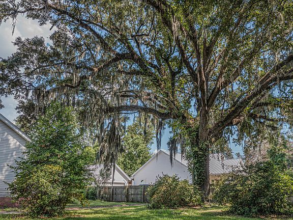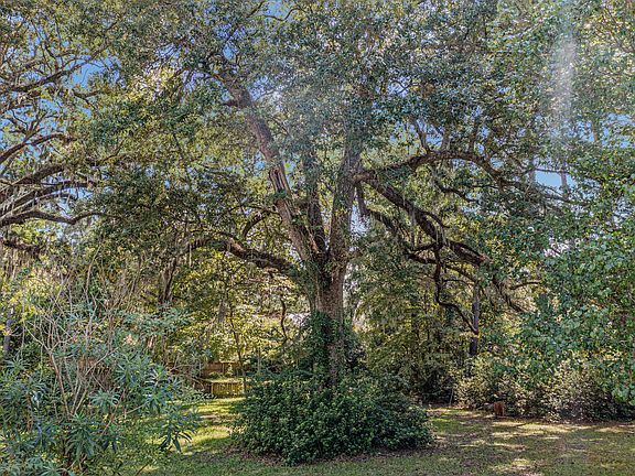 A rare opportunity to own nearly an acre of land in the heart of the Pinopolis Historic District with shared access to Lake Moultrie. Entering the home you are greeted by original woodwork from the 1940s in a large family room. Hardwood floors are throughout this single floor home. Every room has over 10 foot ceilings and crown molding. The roof was replaced in 2020 along with a renovation to the secondary full bathroom. Along with the interior charm of this home, there are three large oaks in the front yard that canopy over the facade of the house. The garage is an oversized two car garage with high ceilings allowing for a space to create extra storage. Do not miss the opportunity to own a charming piece of property in the Pinopolis Historic Village.