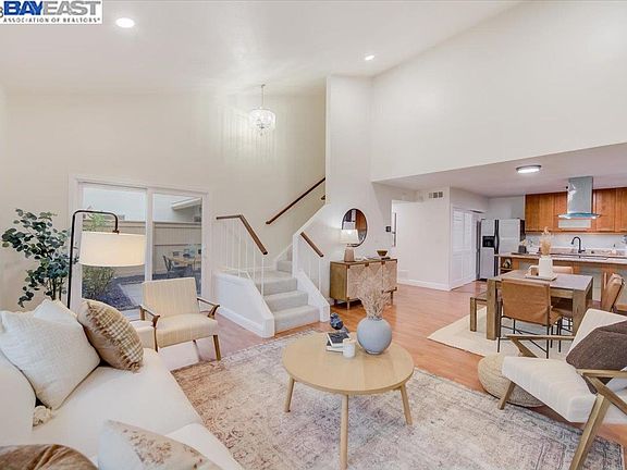 Don't miss this light and bright end unit townhome in a park- like setting. This rarely available floor plan has so much to offer including a full bd/bath on the first floor. The lovely townhome has been tastefully updated throughout with high end finishes including an open concept kitchen with rich wood cabinetry, stainless steel appliances and granite countertops. Laminate wood flooring throughout the first floor. The living room features a cozy fireplace, vaulted ceilings and slider out to your own private patio. Two nice sized bedrooms upstairs share a refreshed bathroom offering new tile and vanity. Dual pane windows, interior first floor laundry, brand new carpet and paint are just a few of the bonuses. The community amenities include swimming pool, tennis courts, clubhouse and loads of greenspace. Close proximity to Bancroft Elementary, Heather Farms, Iron Horse Trail and adjacent from Bancroft Village with loads of shops and restaurants. This beauty simply won't last.
