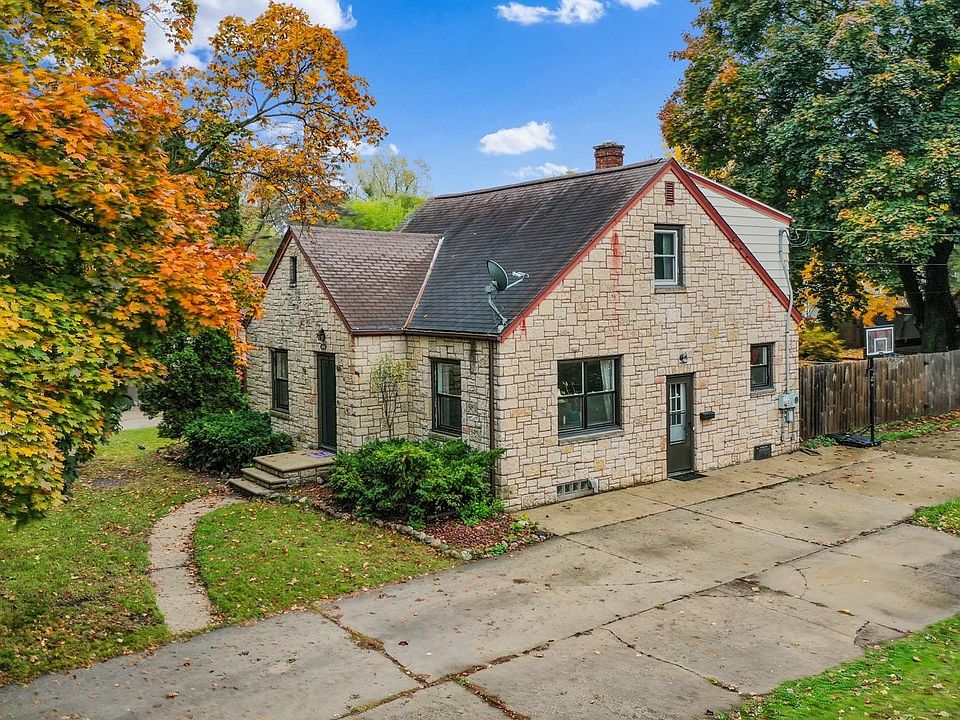 Beautifully dressed in Lannon-stone, this 4BR/2BA Cape Cod near parks, dining & UWGB greets w/arched doorways, exposed brick & oak HW flooring! Fully-equipped eat-in kitchen w/appliances walks out to back-yard w/play-set, shade-trees & shed enclosed by fence w/gate. Main bath nicely updated ('23) w/modern fixtures & walk-in shower. 2 beds w/original oak floor complete 1st level. 2nd floor offers owner's suite w/balcony & full bath, large 2nd bed w/ walk-in cls & bonus den/office. LL ex rm w/unfinished floor & full egress window could be a 4th bedroom! Partially finished rec-rm, laundry rm w/ included washer & dryer complete the home. Vinyl windows installed 2023! 35' deep 2.5 stall garage allows tandem parking!
