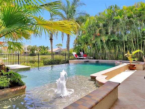 The prestigious PINK DIAMOND! This elegant home is the largest floorplan of Saturnia Lakes offering 4 Bedrooms, Den, 4 full baths, and is situated on a premium lot with LONG LAKE views! You will love the tranquil view overlooking the INFINITY EDGE POOL/SPA, complete with a rock waterfall, out to the lake from one of the two 500 sq ft covered lanais! Inside, you will find a gracious floorplan complete with Living, Dining, & Family Rooms, and huge Kitchen with center island. Up the grand staircase to the second floor, you will find the SECOND FLOOR MASTER SUITE featuring a sitting room, his & her walk-in closets with built in's, impressive master bath with center jetted soaking tub, walk-in shower, and two massive vanities. Other fine appointments include rich moldings, plantation shutters, FRESH exterior paint, and more! Saturnia Lakes offers a resort pool, lap pool, kiddie pool, hot tub, fitness room, dance studio, internet cafe, saunas, massage rooms, billiards room, ballroom, 4 clay tennis courts, playground, basketball court, & miles of walking paths. HOA fees include Landscaping, Irrigation, Clubhouse Amenities, Alarm Monitoring, Cable TV, Internet, and Phone! A RATED SCHOOLS!