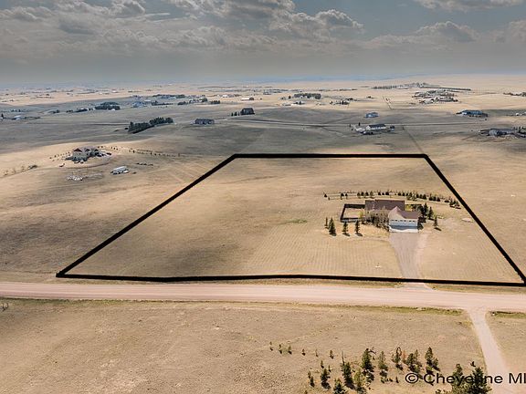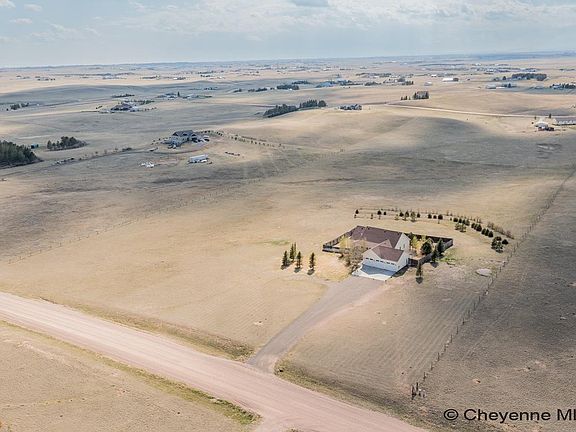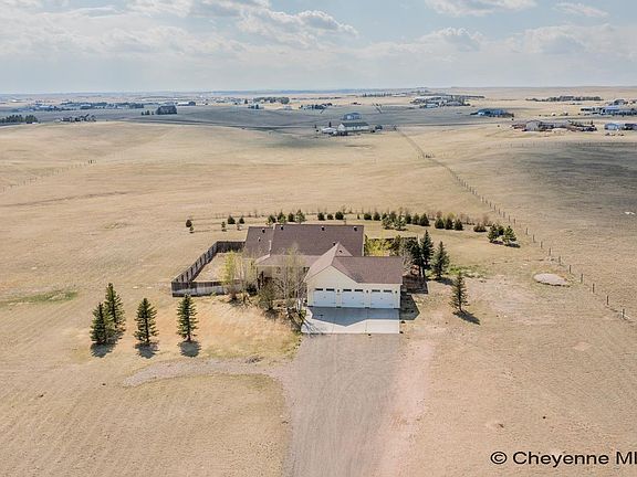 Great location, 15 minutes North of downtown Cheyenne. Built in 2012 on a 9.6-acre lot, this 3,500 square foot home features 4 bedrooms and 3 bathrooms with a 3 car garage. The main floor features an open kitchen with a breakfast nook, a dining room, a large living room with a gas fireplace, and a laundry room. The primary suite on the main floor also has a large walk-in closet. The finished walkout basement features 2 bedrooms, 1 bathroom, a large great room, and 3 large storage rooms.