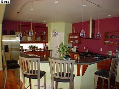 Outstanding home! Many up-grades including Brazilian cherry floors! Gourmet kitchen w concrete counters, quality SS appliances, custom lighting & cabinets! Expansive feel w 9' ceilings & open floor plan. Huge master suite w two-sided fire place w viewing from soaking tub. Foothills view from bedrooms. Jack & Jill bath. Private covered patio & 3 decks! Separate entrance to separate living area, generates income. 2 bds, fam rm, Jack & Jill bath & fully functioning wet-bar. Rented m-m, $1350/m.