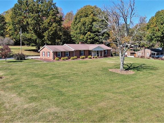 Get ready to move! This brick home perched on just over 2 acres in the desirable countryside of Kernersville awaits! Enjoy sunrises from your full length covered front porch, and the sunsets from your back deck. Your kitchen overlooks your den with a door leading onto your back deck, and a woodstove insert for cozy winter eves. Large living room at the front of the home for entertaining, spacious bedrooms, and one has a built in dresser with shelving! Large unfinished basement has another fireplace and plenty of space for storage. Feel protected with your active security system. Nice long paved drive leads to your attached garage to shelter you from weather when coming home. The sun sets on your peaceful backyard, fig and apple trees, and a barn structure to protect your yard tools and mower. Don't delay, your relaxing new home awaits!