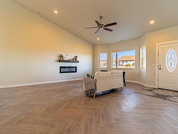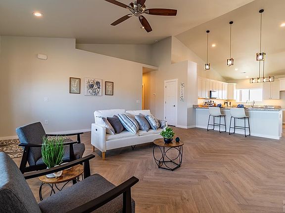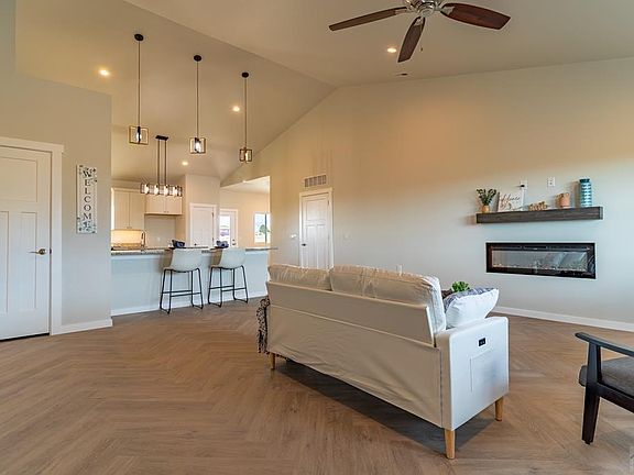 Beautiful Brand NEW home located in Pueblo West! Take a look at the great curb appeal with the nicely covered porch and stamped concrete accents along the driveway. As you enter this open floor plan you are greeted with Grand Vaulted Ceilings and unique Herringbone style Luxury Vinyl Tile the continues throughout the home. The Living room is very inviting as it boasts a nice electric fireplace and a custom made mantle. The magnificent kitchen offers a clean, modern style with granite counter tops, soft close cabinets, an extra sink (island), black stainless steel appliances, bar seating, and a large adjacent dining area for those special gatherings. The Master Suite includes a large Walk-in closet with an amazing 5-Piece Bath, luxurious freestanding tub, vertical style tiles w/pebbled shower floor, dual shower heads (wall & ceiling mount with rainfall) and dual sinks. The Laundry area/mudroom provides that much needed storage cabinetry. Take a stroll onto the large back covered porch to experience the beautiful mountain views. This home is handicap accessible with zero entry thresholds and 3 ft doors throughout. This new build is an all around beauty with neat features and finishes! Call for your personal showing today!
