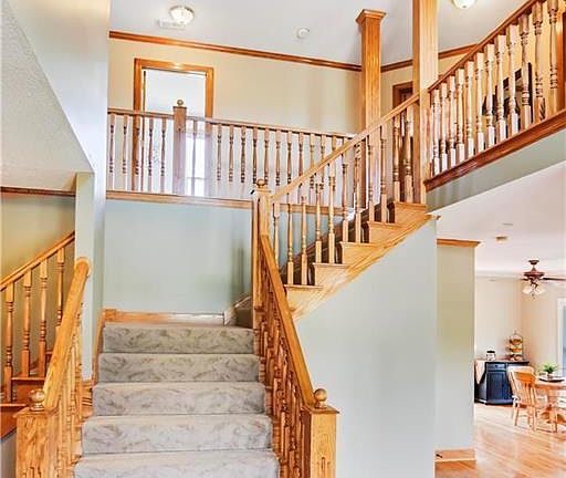 Serene country setting just outside city limits! Open concept main level boasts grand entry, HW floors, formal dining room, spacious kitchen/dining with loads of cabinets, office, & numerous large windows providing a ton of natural light & beautiful view of the pond & 5 acres. Master suite features extra large walk-in closet, separate bathrooms, & coffee area. Large bedrooms & laundry round out the upstairs. Basement has stamped concrete floor, 9 ft ceilings, wrkshp/hobby room, fireplace & walks out to the pond!