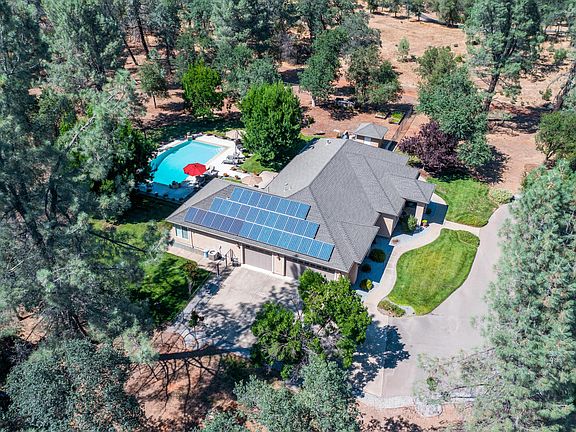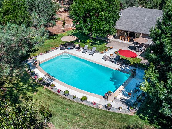 First time offered for sale! This highly custom home offers a wonderful floor plan with elegant and thoughtful design throughout every corner. This single story home sits just under 2,800 sq ft, features 4 spacious bedrooms, 2 full baths 1 half bath, open floor plan with eating nook off kitchen and formal dining, high ceilings, split bedroom floor plan, pull through drive way, Owned Solar, over 7.5 acres of land, fantastic 20 x 30 (approx) gunite pool, 3 car garage, outbuildings and the list goes on. This home is truly special and is a must see to appreciate.