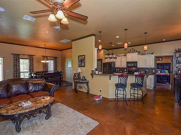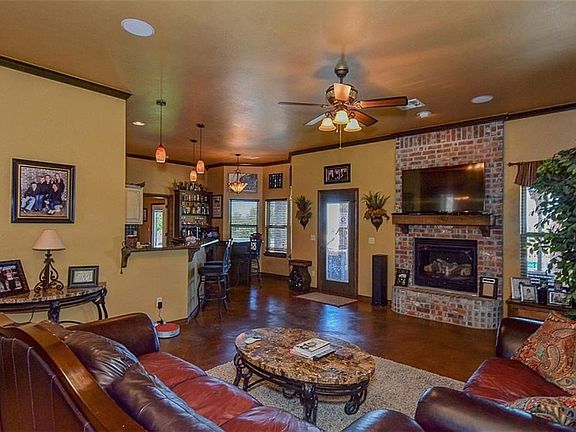 ALMOST 5 BEAUTIFUL ACRES,PLAY AND STAY ON THIS BEAUTIFUL OUT DOOR LIVING SPACE THAT OVER LOOKS INGROUND POOL AND JUST NORTH OF THE POOL IS A POND THAT YOU CAN FISH IN. BACK YARD AND POOL AREA IS FENCED, OUT DOOR FIREPLACE WILL KEEP YOU WARM AND COZY IN THE CHILLY EVENINGS. YOU CAN'T FIND A MORE BEAUTIFUL SETTING TO SEE THE OKLAHOMA SUNSETS. THE NEW TURNPIKE WILL MAKE IT SO CONVENIENT TO DO THE CITY ANYTIME OF DAY OR NIGHT AND WILL PUT YOU RIGHT BACK INTO THE COUNTRY IN NO TIME. BONUS ROOM CAN BE 5TH BEDROOM WITH BATH. COME SEE THIS WONDERFUL HOME WITH WIDE OPEN SPACES INSIDE AND OUT. SO MANY AMMENTIES AND ALL IS WELL CARED FOR.