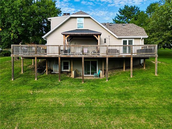 Amazing sprawling home on almost 4 acres in Andrew County's highly sought-after Savannah School District. This is the one you have all been looking for! 4 bedrooms, 3.5 bathrooms, beautiful remodeled kitchen with stainless appliances, granite countertops, custom white cabinets with a huge pantry with pull out shelving, glass-tiled backsplash and stainless farmhouse sink, separate formal dining room, sitting room with gorgeous white brick fireplace and a large living room too! 2 bedrooms and one bathroom on the main floor, plus main floor laundry! Upstairs there are 2 more bedrooms, a full bathroom and a half bath and in the basement there is 3 large finished areas, an additional white brick fireplace, the third full bathroom and a bonus room, plus storage room with built-in shelving. All new flooring throughout, hardwood flooring in the main areas, wood-look large tile in the bathrooms and carpet in bedrooms and basement. Massive deck that wraps around 2 whole sides of the home overlooking the beautiful green acreage and pond. Come see this one soon, it will go fast!!