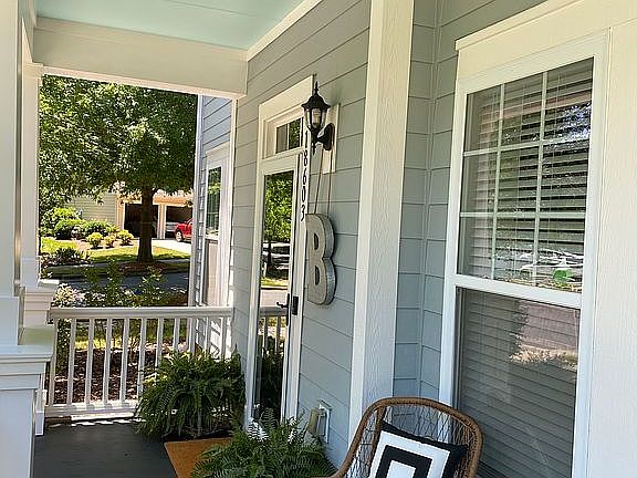 Beautiful 3BR/2.5BA with great loft located on a corner lot with large rocking chair front porch! Enter into a bright, open floor plan with hardwoods throughout. Many awesome updates! Entertaining will be a breeze in the large kitchen with granite countertops, 42" white cabinets, Whirlpool s/s appliances, 10ft ceilings, and great room with built-in cabinets and cozy gas log fireplace. Gorgeous owners suite with beautiful upgraded bathroom including a gigantic walk-in shower, framed mirrors, and furniture style double vanity. Relax in the fully fenced backyard featuring a 24X13 stamped concrete patio with bar! Very nice cabinetry in garage with workbench.