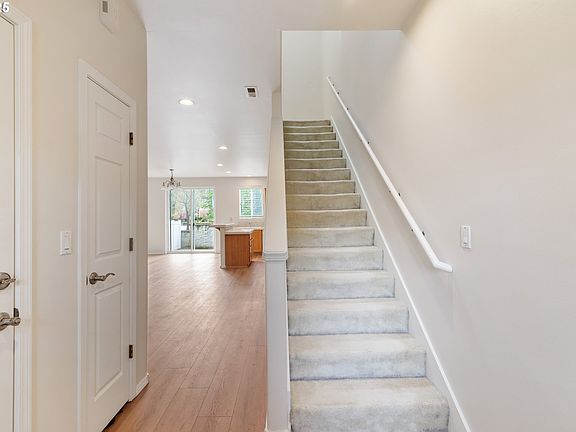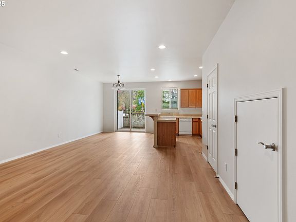 Welcome into a spacious open floorplan on the main level; new vinyl wide-plank flooring and a cozy fireplace give warmth to the great room while fresh paint and high ceilings draw in light. The kitchen offers an island with breakfast bar and all appliances are included. Step out from the dining area to a quaint backyard accented by a tranquil pond, an ideal backdrop for relaxing or entertaining. The primary bedroom has vaulted ceilings and an ensuite. All bedrooms and laundry are located on the upper level. Tualatin Country club, parks, shopping and restaurants just a few blocks away. Ready for you to call home!