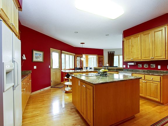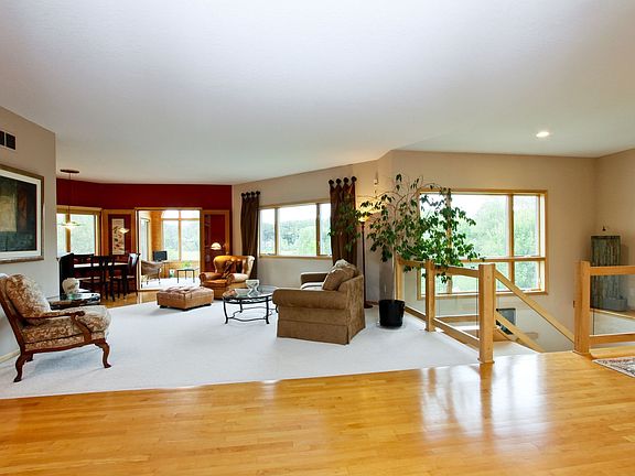 Gorgeous Vaulted Walk-Out Rambler on beautiful private .6 acre setting. Hard to find one-level living w/dream workshop! Generous sized rooms, w/several quality built-ins throughout. New furnaces w/dual zoned heat, 3 season porch, separate tub & shower.