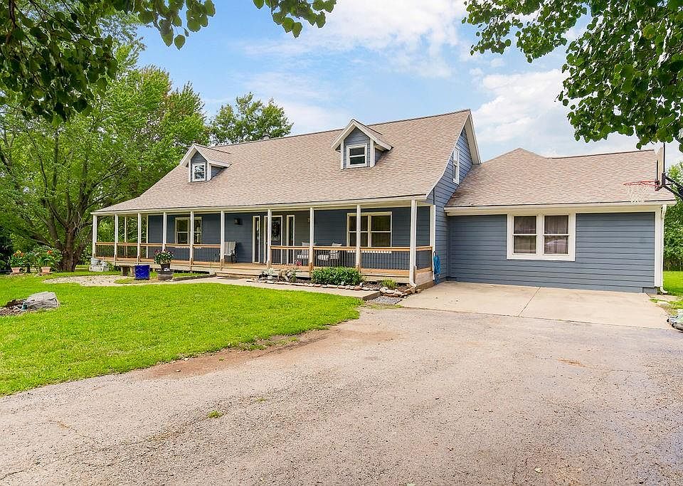 This beautiful 2.5 acre lot provides a country feel with city conveniences! Schools and shopping are all close by, and just a 2-minute drive or 10-minute walk to Cleveland Lake! This inviting 4 bedroom/3.5 bath home has over 4,700 finished space with a walk-out basement. The expansive covered wrap around porch greets you when you first arrive and connects to a 14x46 rear deck! Tiled entry and newer luxury vinyl plank extends the main floor! Living room with wood-burning fireplace, upgraded blinds/shades, and built-ins! Gorgeous white kitchen with center island, granite, stainless appliances! Formal dining with plantation shutters, built-in glass cabinets, and access to the porch! Breakfast area with plantation shutters and breakfast bar. Main level laundry includes built-in cabinets and a sink. The Primary Suite is impressive, boasting a sitting room or large office as you enter, and opens to a huge bedroom with soaring vaulted ceiling. The walk-in closet is HUGE with built-ins! Inviting primary bath with custom tile work, jetted tub, and huge custom-designed tiled shower with dual shower heads including a raindrop showerhead! Main level half bath with tile and granite sink off the breakfast room! Off the laundry and up the stairs is a huge, vaulted bedroom with lots of storage. Upstairs off the entry, are two gorgeous bedrooms with custom built-in beds and shelving. Hall bath with tile, walk-in tiled shower, and tiled sink. Finished walkout lower level has new luxury vinyl tile, a non-conforming 5th bedroom, full bath with walk-in shower, and rec area with floor to ceiling window! HVAC system is newer as well as the roof! The rear garage holds 2 cars AND has additional space used for a workshop! This beautiful home is nestled on a huge 2.5 acre lot surrounded by trees to give you your own serene retreat every day and you'll simply love the breathtaking sunsets! Horses are allowed, too!