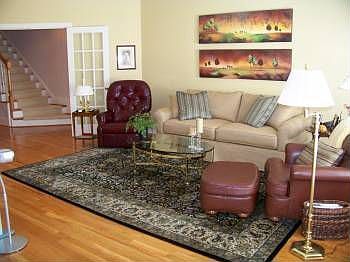 2 BR's on main! Upgraded home in The Peninsula! Updated kit w/SS appl, granite, light fix., new hardware. Large GR w/gas fp. Master BR on main w/private entry to deck. Crown molding, 9' ceilings & columns on main. Bonus w/wet bar on upper level. Private fenced courtyard, Trex decking & 2 car back load garage. Privacy fence is well within the property boundary lines & can be expanded.