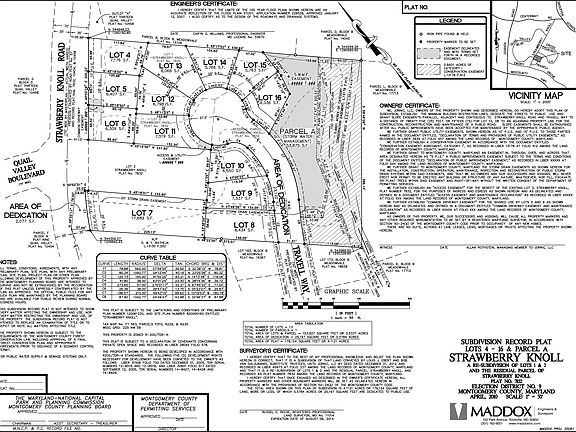 13 single family lot subdivision currently under development just minutes from I-270 and the Lakeforest Mall in Gaithersburg, Montgomery County. Served by public water and sewer, lots range from 5,763 SF to 9,434 square feet. Site development is expected to be completed in late 2017. Property is located just a short walk from Strawberry Knoll Park and Strawberry Knoll Elementary School.