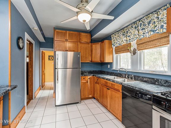 Vintage charm abounds in this charming Homewood home. Current owners have lovingly maintained this three bedroom property on a corner lot with cedar fenced yard. Kitchen has a breakfast bar, Cherrywood cabinets(2015) and stainless stove and refrigerator (2019). Living room with stone hearth wood burning fireplace, custom fireplace doors, built-in shelves and original french doors. Hardwood is under all the carpeting. Home has two porches. Front porch swing will stay, new porch windows, storm door and front steps(2022). Front red door is original to the house built in 1924. New tear off Roof and asphalt driveway(2022) with plenty of space on driveway to make a three point turn. New windows throughout(2017). Lenox Boiler (2010), Hot Water Heater (2013). Garage door is being sold as-is. Garage workbench will stay. This home is conveniently located close to everything Home Sweet Homewood has to offer. You are near downtown Homewood, Metra train transportation, PACE bus service, Interstate Highways 57, 294 and 80. Enjoy Homewood Parks and Recreation, schools, restaurants and shopping.
