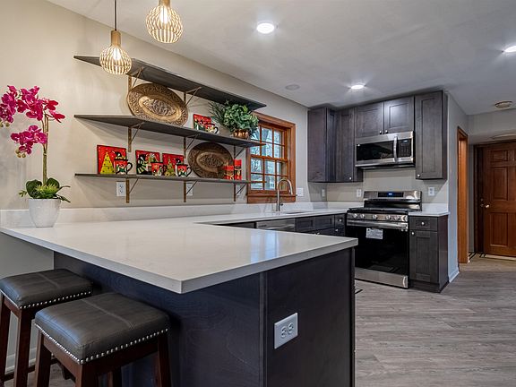 This house is like brand new and move in ready!! 2200 sq ft all brick ranch on .99 wooded acres, backing up to Turtle Creek. Completely renovated custom home with open floor plan, two wood burning fireplaces, totally new kitchen with new cabinets, granite countertops, and stainless steel appliances. New bathrooms and new LVT flooring throughout. Solid pine six-panel and louvered doors, tons of storage and 3 cedar closets. Spacious, partially finished basement with third bath roughed in. Newer roof, furnace, central air, and water heater. Upgraded electricity throughout with recessed lighting and all new light fixtures and ceiling fans. Huge patio and new deck overlooking the woods and creek. Agent Owned.