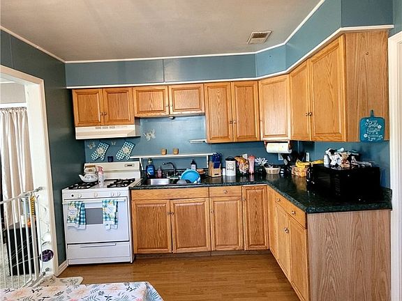 Ranch home, 3 bedrooms, 1 bath, updated kitchen & windows situated on a nice large lot in a quiet area. The back addition needs work and the 2 car garage is in disrepair & will need a roof.