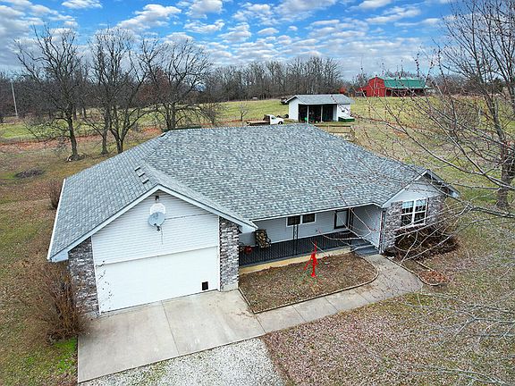 Tired of looking for that acreage with a nice home? Your search has ended. Very well maintained 3 bed , 2 bath home on 22 acres.This immaculate house is move in ready. Big living area with split bedroom floor plan providing lots of privacy in the primary bedroom area.The kitchen has lots of nice cabinets, and provides a beautiful view of the back yard and beyond.This property is a hobby farmer or horse persons dream. The acreage has been well maintained for years, and until recently was used for cattle, and hay production.The 60x60 barn is set up for cattle, but would take very little to be turned into a horse barn. Not only do you get well maintained pastures, but there is a huge stocked pond as well!For those that have been looking to become more self sufficient, there are a number of mature fruit trees, as well as pecan trees and berry vines.To add to the appeal of this nice farm, there are two wells, and 3 electric meters already in place.The property is made up of 6 lots, giving you some different options should you want to divide.Located approx 20 minutes North of Springfield.This property has everything you could want.Please call for appointment