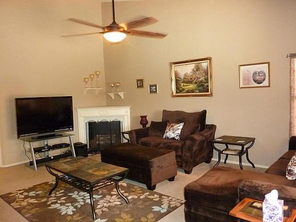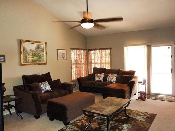 Cute and open Great Room floorplan with vaulted ceilings and 3 bedrooms, 2 baths, double garage, covered patio, beautiful large play pool, shed, and electric fireplace. No houses behind and no HOA! Bedroom 3 has double doors to great room so would also make a great den/office. A/C is 4 years old. Kitchen has new granite counters and sink and master shower has new surround with new glass door. You will love this home so hurry and make it yours!