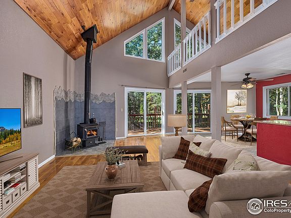 New Price! Welcome to your Colorado mountain getaway. This well maintained, move-in ready 3 bedroom / 2 bathroom property is situated on a private 1.25-acre lot, surrounded by a lovely mix of aspen and evergreen trees. Spanning 2,234 square feet, this delightful home features an open floor plan enhanced by high ceilings and oversized windows that seamlessly blend indoor comfort with the beauty of nature. As you step inside, admire the stunning hardwood floors and modern finishes - think sleek quartz countertops and stainless steel appliances, perfect for the home chef. Upstairs you will find a cozy sitting area that overlooks the main living space and a private primary suite designed for relaxation. Don't miss the spacious bonus room above the garage; whether it becomes a media haven, a music studio, a personal gym, or a game room, the possibilities are endless. Step through the sliding glass doors onto the expansive front deck, ideal for hosting gatherings with friends and family, or simply kicking back and enjoying the surrounding nature. Your furry friends will love the secure fenced yard that completes this perfect package. The mid-Gilpin location allows for easy access to the Gilpin Community Center and nearby Golden Gate Canyon State Park. Shopping, dining, and entertainment are just up the road in Black Hawk / Central City or Nederland. Ski enthusiasts will revel in the proximity to Eldora Ski Resort, while hikers and bikers will be thrilled by the nearby trails. A great starter home or mountain get away for anyone looking to escape the hustle and bustle of the city. Call today to schedule a private tour.
