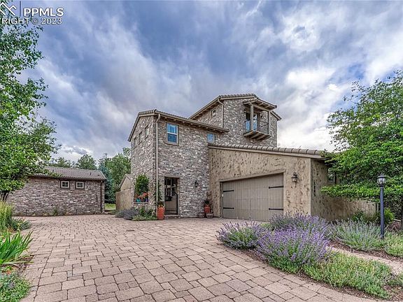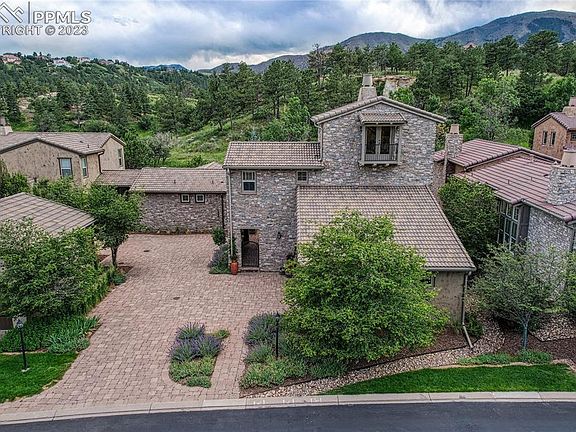 Bellezza means beauty or loveliness in Italian! What a perfect name for this gorgeous Villa in the La Bellezza subdivision! Located in the highly desirable foothills in northwest Colorado Springs, take in the mountain and city views from several areas of the home such as the attached balcony off of the upper level office or from the cozy patio. Enjoy a morning cup of coffee or a relaxing evening outside in the enclosed cobblestone courtyard! The interior of the home features a gourmet kitchen with granite countertops, upgraded kitchen cabinets, ceramic tile flooring, large breakfast bar, and stylish farmhouse sink. The inviting great room boasts wide-plank hardwood floors, beautiful wood beams on the ceiling, a gas fireplace and loads of natural light. Two master suites, one on the main level and a larger one with a 5-piece bath and oversized closet on the second level. The huge upper level office with another gas fireplace and a balcony with views offers a great space to work from home!
